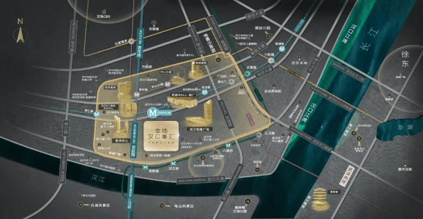 商业配套:被武汉高奢商场环绕,最近的是恒隆广场,步行 200 米左右即可到达,同时摩尔城、K11、武汉国际广场距离项目的直线距离也不超过 400 米。
