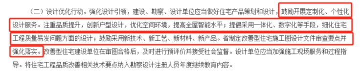 什么是好房子?写进了江苏省住建厅的《住宅工程品质提升行动方案》中,方案明确提出鼓励商品房开展定制化、个性化设计服务。