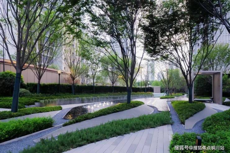 进入社区,迎面而来是潺潺水景,层叠交错,随处可见的酒店风元素搭配层次丰富的植被,置身其中,身心也随之放松。