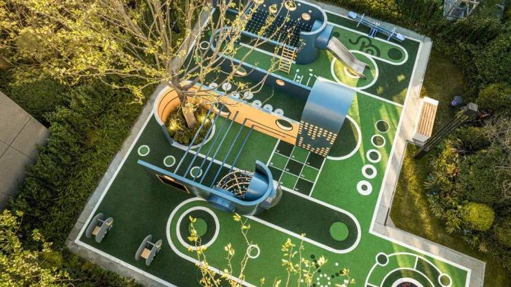 印象深刻的是项目的儿童游乐区,这是华润特别设计,打造了具有华润润小象主题的儿童器械,包括不同的场地模块组装和全年龄的儿童器械,符合儿童认知需求,培养儿童运动能力。