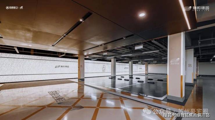 地下入户大堂几乎做到同等规格;车库落客区吊顶运用蜂窝铝板搭配射灯造型,墙面米色大板搭配石材抽槽造型,归家仪式感直接拉满。