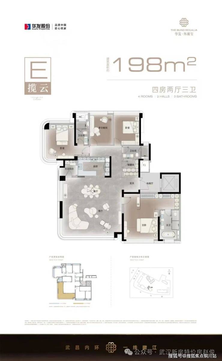 以积淀华发45载豪宅经验的“玺”系为根基,叠加“外滩系”+“玺系”双TOP产品线,传承华发双顶序基因。华发第三座外滩顶序藏品首发,著武昌内环滨江的传世奢藏。