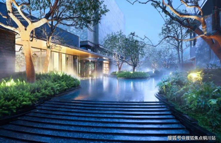 沿连廊而入,百合水院映入眼帘。水,是园区的点睛之笔,绿城借地势高差打造了6米高的三层水瀑,一番“虽有人作,宛自天开”的审美意趣。