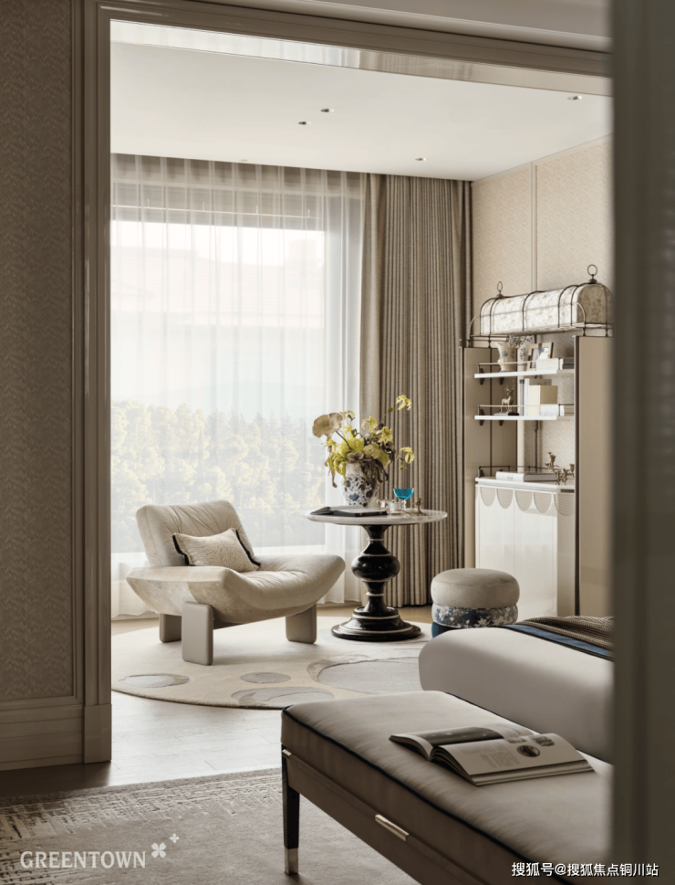 绿城还在主卧套房设有休憩区,可安放沙发、品茗小憩,尽显主人志趣品味,于卧室内私享一方放松天地,惬意悠然。