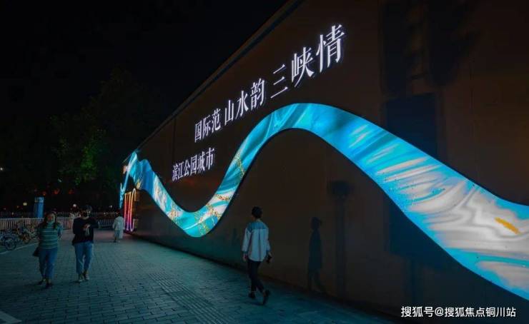 巨幅“长江画卷”在灯光的衬托下宛如流动的江河,极具强烈震撼的视觉效果。8幅屈原经典诗画和镶嵌在围挡橱窗里的橘树,将屈原文化融入城市肌理,蕴含着宜昌浓厚的文脉底蕴和文化自信。