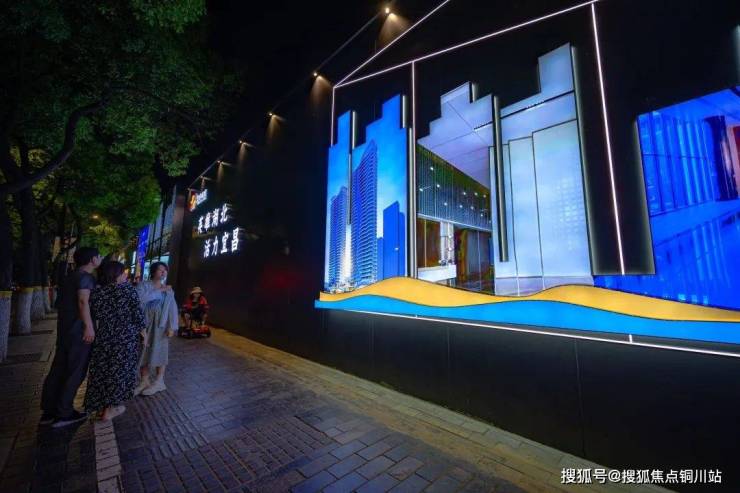颠覆传统模式,超一线城市的艺术围挡设计理念,大量选用展会级钢化玻璃、亚克力LED背发光等材料,通过极致光影效果使之与城市夜景灯光工程交相辉映、融为一体。