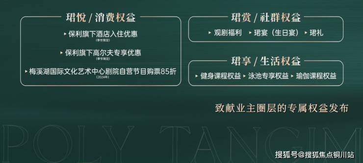 ●4月,「天下识珺」致献业主圈层的专属权益发布,保利旗下酒店入住优惠、健身课程权益、泳池专享权益、瑜伽课程权益等,为业主质造物质之上的心灵丰盛。