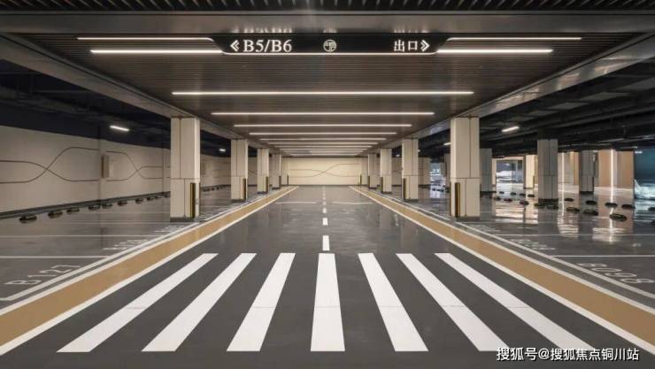 ●车库南北向主车道吊顶升级成全车道吊顶,并采用格栅加灯带的形式,既保证了车库的明亮大气,又让整个空间富于韵律变化。