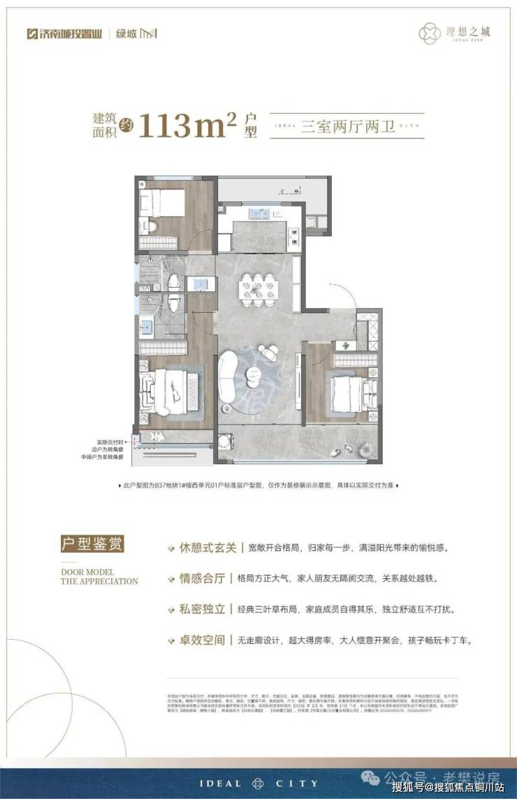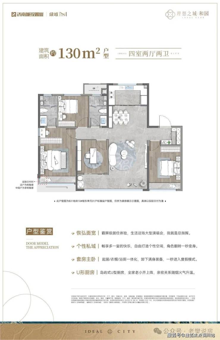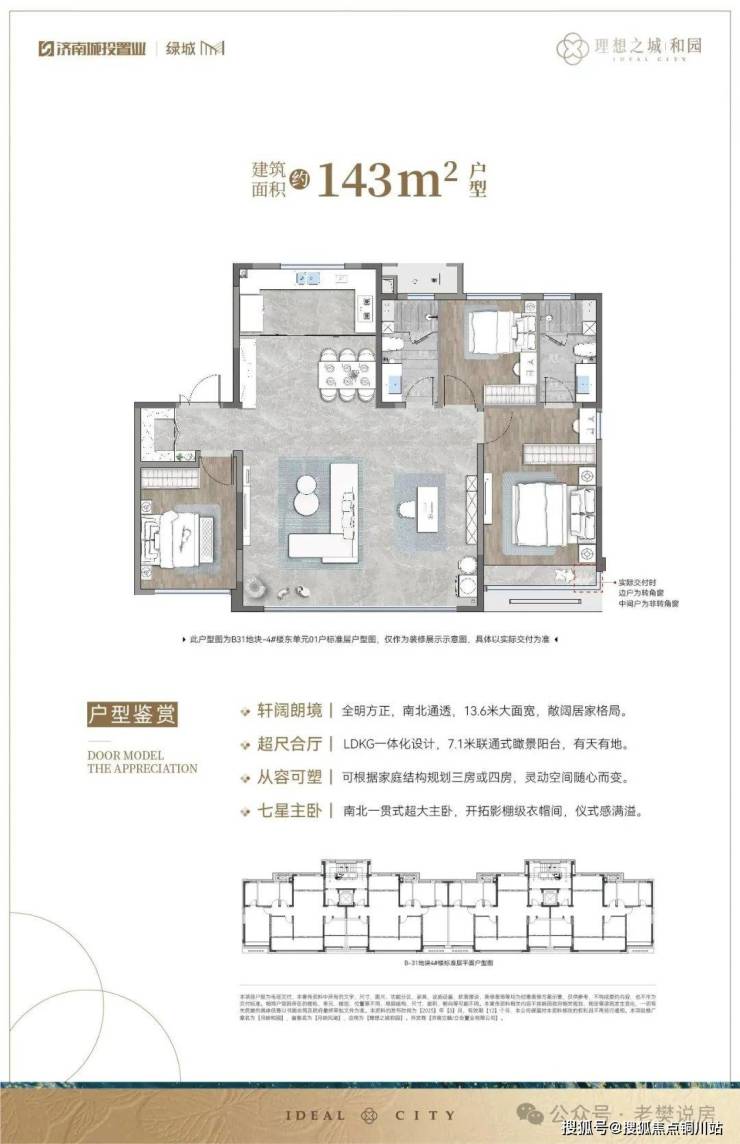B31地块绿地率35%,总计619户。产品涵盖3栋洋房,7栋17、18层小高,户型面积为122-143㎡;
