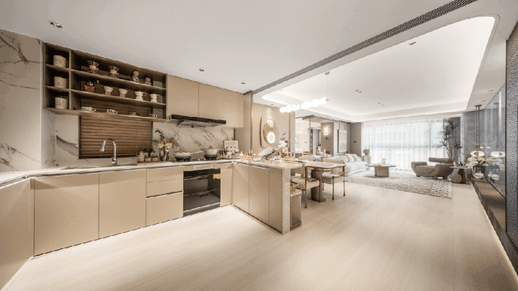 美学考究的选材与工艺。项目对当下客户需求深入研究,对照 “ 好房子 ” 标准,在美学、实景、得房率、收纳等方面持续创新,最终实现设计更超前、颜值更美、拓展空间更多、生活场景更饱满的产品呈现。