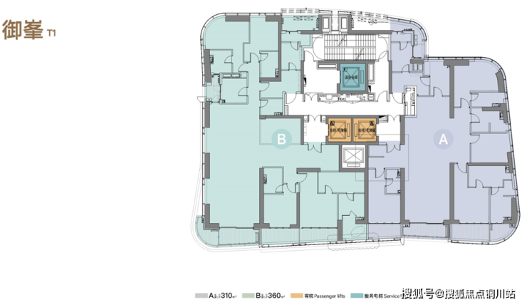 为满足高净值精英阶层的生活需求,我们打造的两栋不同面积段的户型,T1御峯建筑面积约310-360㎡,T2皓日建筑面积约105-185㎡。
