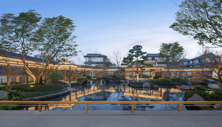 宋式美学设计:项目秉持清润典雅的宋式美学,以中式园林手法营造一园多点、四进院落格局,打造七大奢享场景。从高约 10 米、宽约 26 米的中式威仪府门,到龙鳞纹水景墙、定制古铜金格栅 “华盖” 等,都演绎出宋代宫室殿宇精髓。