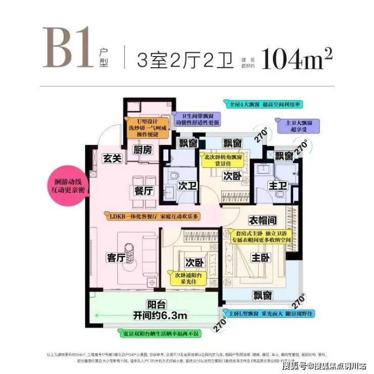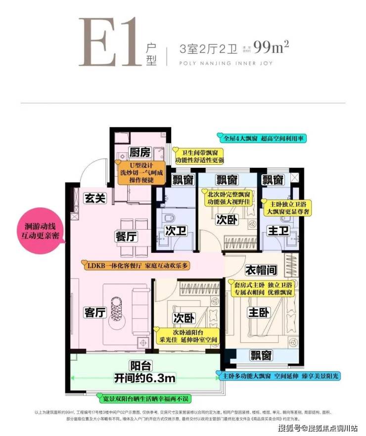 • 南向三开间+6.3米宽景双阳台:270°转角设计,采光与视野双重升级;