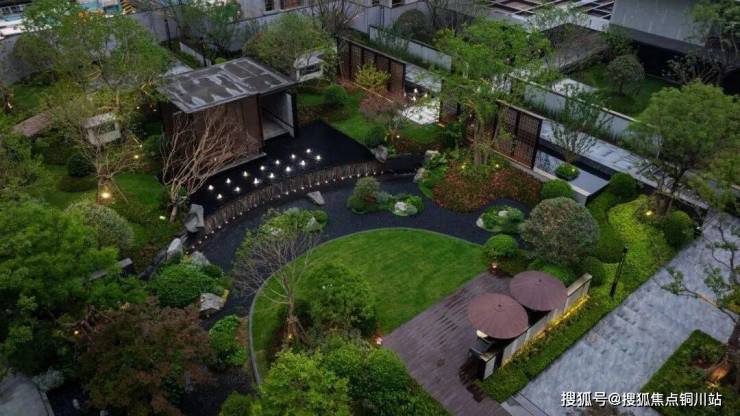 荷雨瑧悦以金陵第一园"瞻园"为蓝本打造的"一园三堂"景观体系,让乌桕、红枫等名贵树种与飞云跌瀑相映成趣。