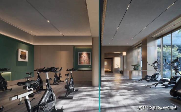 室内包含健身房、瑜伽室、茶室、私宴厅及儿童活动区等功能区,采用回游动线,与景观浑然一体,健身休闲时可以享受天光云影的自然惬意。
