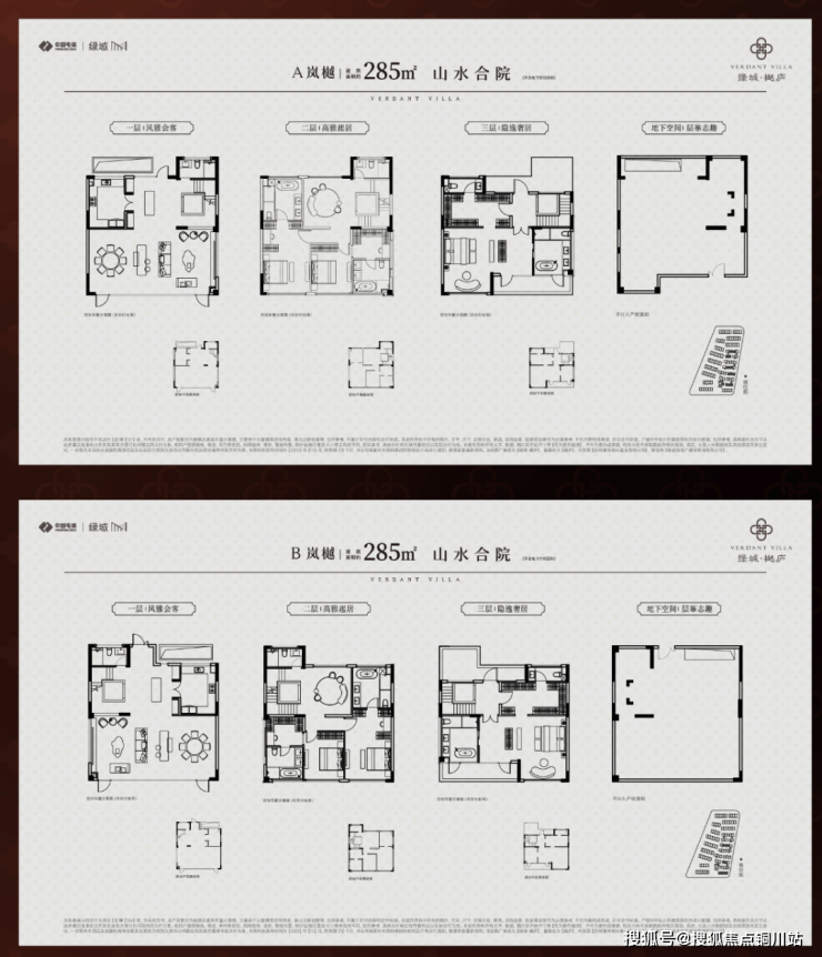 绿城·樾庐打造建面约285-340㎡山水合院、建面约200-305㎡诗境叠墅。