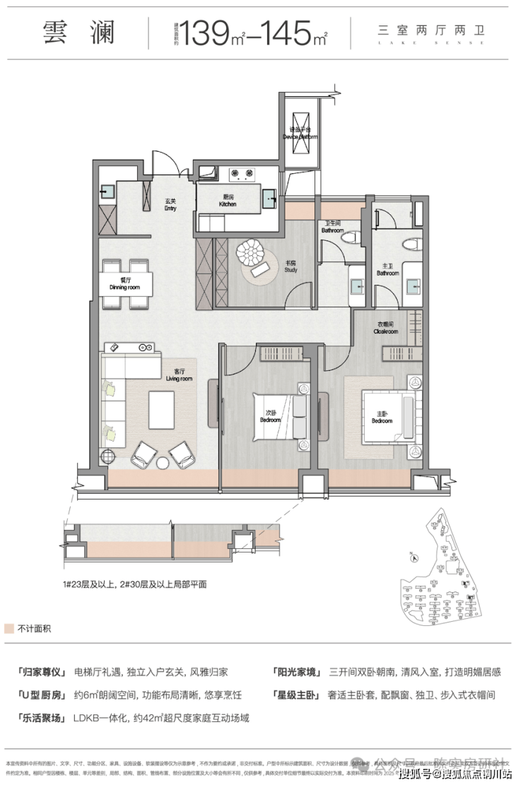 设置13栋高层、12栋洋房、7栋叠墅,高层户型建面约108-137平,洋房户型建面约138-167平,还配置有少量220平一线临湖叠墅产品。