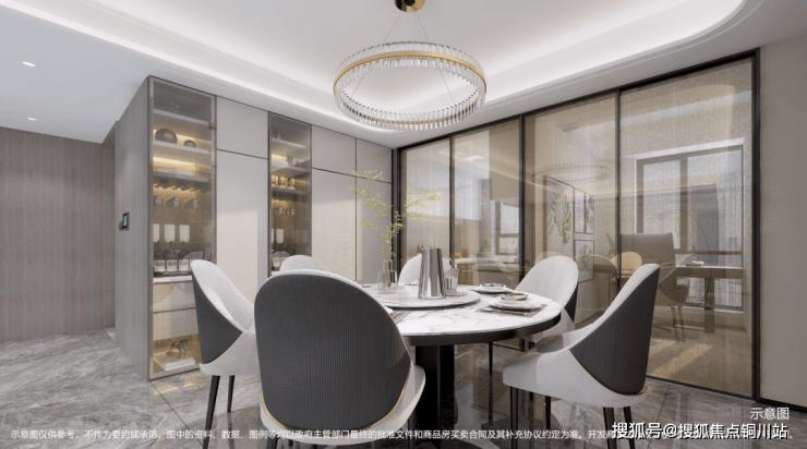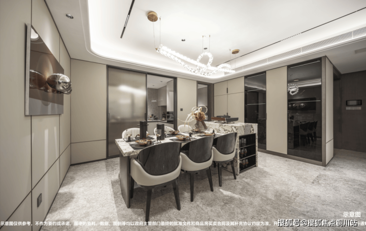 还有一些设计细节也很打动人,比如主卫有双台盆,宽敞的餐厅与客厅同宽,能够放下高大的餐边柜,靠近餐厅还有客卫的洗手台,对于日常生活来说,会非常舒适方便。