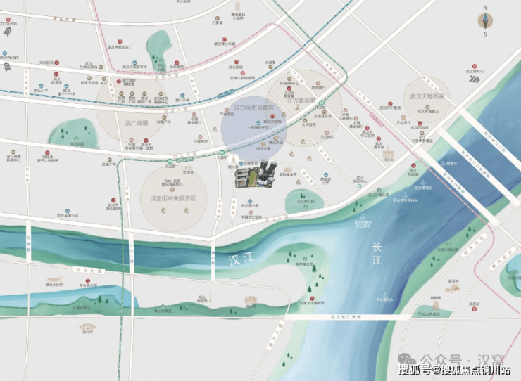 在公共交通方面,项目最近的地铁站是六号线六渡桥站大约有300米,自驾出行方面,可以快速上中山大道和沿江大道,两条主干道可以轻松畅达武汉三镇。