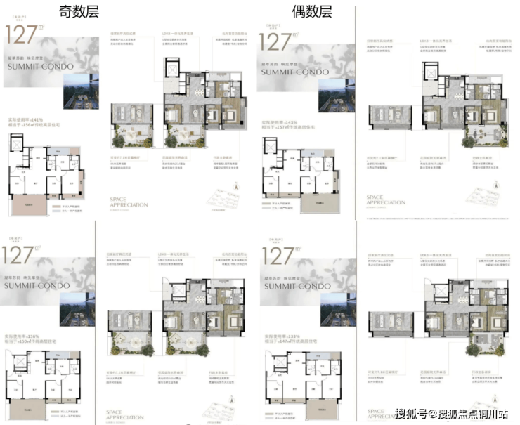 这部分空间不计入建筑面积,意味着在同样的产权面积下,业主获得的实际使用空间大幅提升。综合实际使用率至高可达130%+:建面约127㎡的户型,实际使用面积相当于传统高层住宅约150㎡;建面约143㎡的洋房,实际使用面积直逼传统高层住宅172㎡户型。