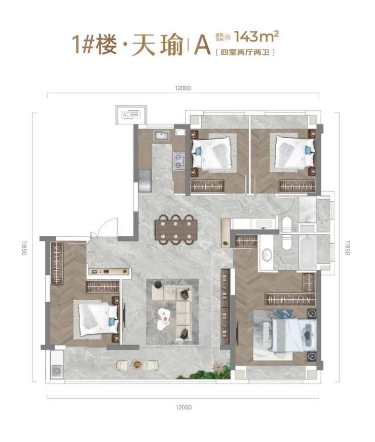 面积段丰富:项目全盘户型建面约 122-179㎡,从舒适三房到宽敞四房,满足了不同家庭结构和需求的客户选择。
