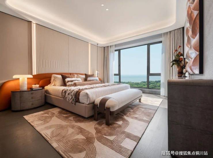 以2米宽床为核心的睡眠区、可放置数百件衣物的奢阔衣帽间、配置双台盆+独立浴缸+淋浴间+马桶区的四分制主卫,南向落地窗畔的赏景区,共同构筑出一个融合休憩、观景、休闲等多维场景的“生活能量场”。