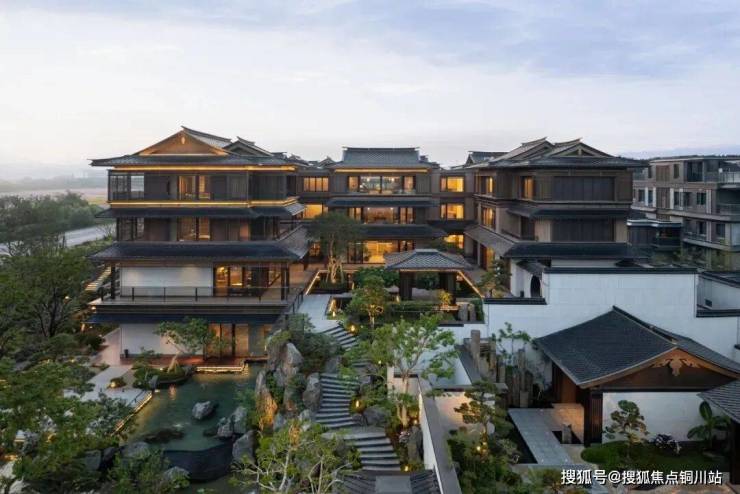 立体院居,功能臻配:叠墅与合院的奢享尺度建筑整体采用蓝眼睛石材、铝板、玻璃幕墙等材质,搭配香槟金和古典灰,为建筑增加高贵、庄重的气质。