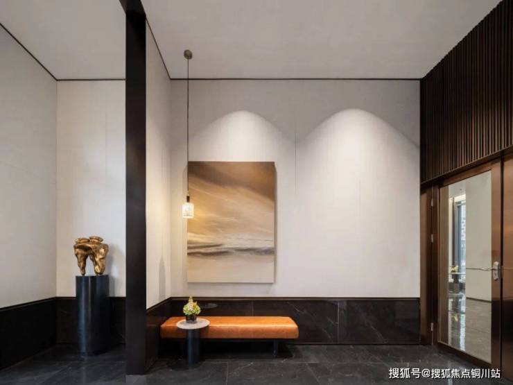 看到它你就能够感受到强烈的仪式感,因为从地面到大堂主体整个空间使用了大量的对称设计。但只有对称是没有用的,对称的框架中,填充的是能建城发强大的审美力、产品力与兑现力。