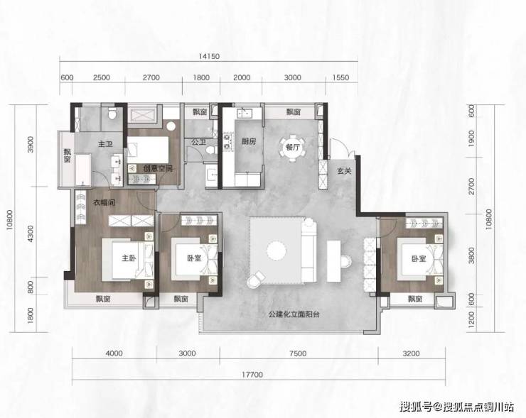 再比如项目的户型,所有户型都拥有遥遥领先的面宽。(建面约143㎡的户型面宽约15米,建面约170㎡的户型面宽约17.5米)并且,所有的阳台甚至是主卧的飘窗都拥有着至少双面的采光。
