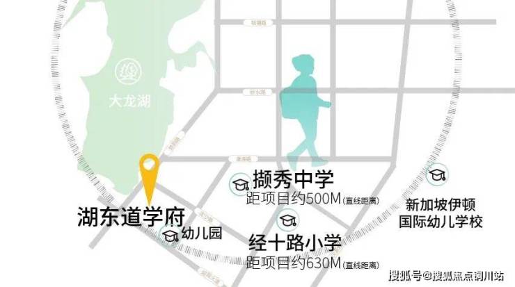华侨城·湖东道配套幼儿园、约500米处是徐州名校撷秀中学,约630米处是徐师一附小教育集团经十路小学(直线距离,数据来源高德测距),周边还有潇湘路中学、华顿国际学校等,实现从幼儿园到中学的12年全龄教育链,让“学校就在家门口”的愿景落地生根。