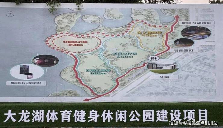 大龙湖体育健身休闲公园占地面积约109300㎡,建设内容主要包括350M公园活力环、600M欢畅运动环、600M趣玩草坪环、450M亲子休闲环。(信息来源:项目围挡宣传图)