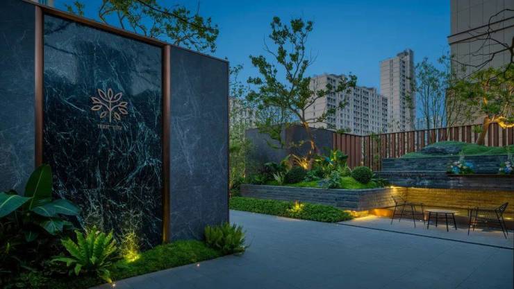 星级酒店式入口的大型朴树和Prada绿奢石;