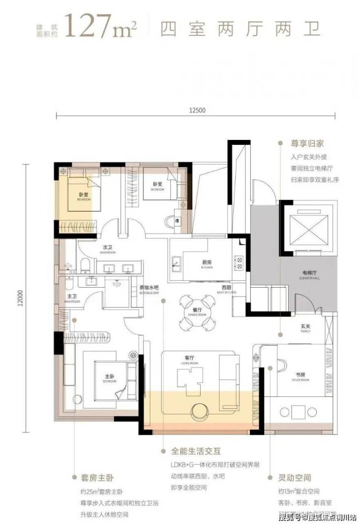 也就是说哪怕建面127㎡,也能做到真四房设计,无论是三代同堂,还是二胎家庭,这个户型完全够用。