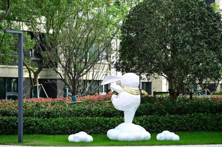 最后,是它的绿化景观非常精致丰富。白色石质的景墙、饱满的坡度、圆润的曲面……海棠、枫树、石榴、绣球、黄金菊、桂花等组成的高大树种、灌木、乔木,错落有致。