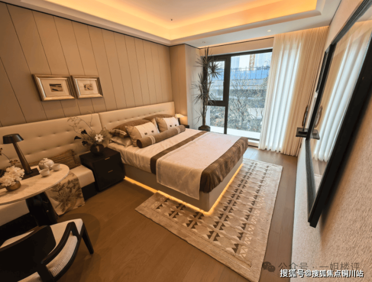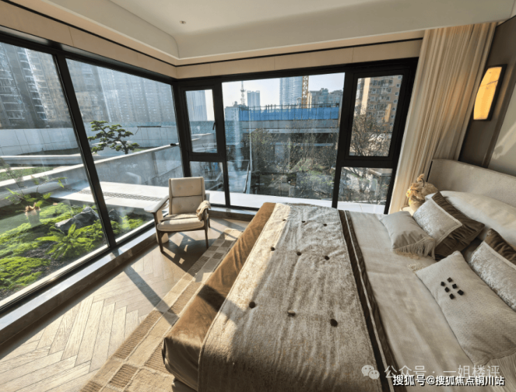 三面采光的主卧,可惜的是不是在高区实体样板间,看不到窗外江景视野。