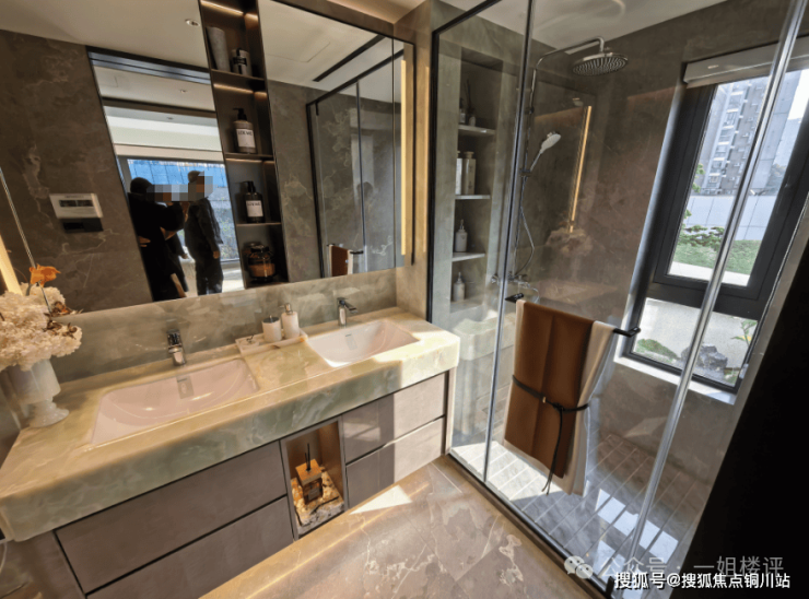 主卧的卫生间也是双台盆,不过没有放置浴缸: