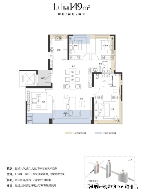 该项目的主力户型其实是建面约149平的四房两厅两卫: