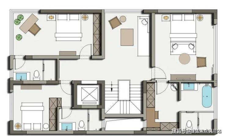 二层设置了三个卧室,主要给小孩及大人使用,考虑到他们的成长学习及相互间的交流互动,设计师还多设置了一个多功能休闲学习区域。