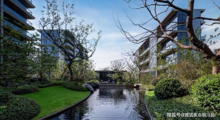 以《千里江山图》为蓝本,匠造「三轴五桥十二境」园林景观,保留原生堤岸58棵香樟,甄选珍稀古树名木、景石点缀其间,水系蜿蜒串联,将自然意境凝练于一园之中,构建起可栖、可赏、可传世的精神居所。