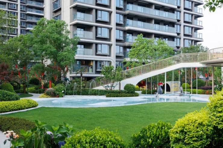 景观打造也是不计成本。目前市面上的开发商为了节约成本,很多景观都是大草坪为主。但保利·和颂望悦用高树木密度、近100棵名贵树种,造出了比效果图还震撼的效果,简直“卷死”同行。