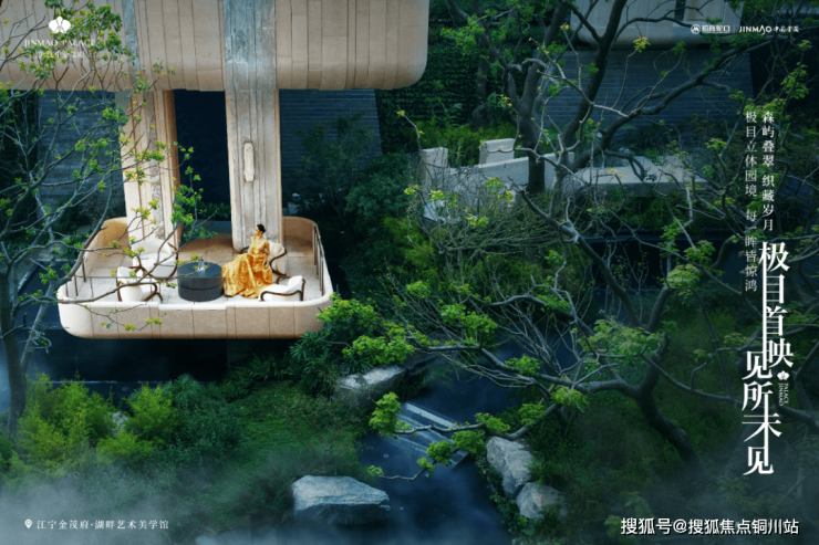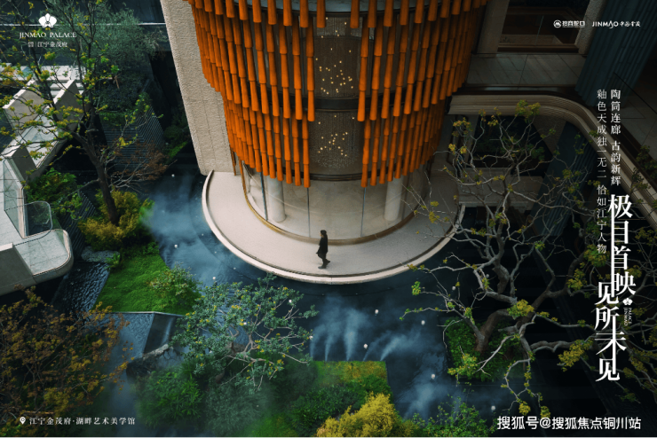 项目从深厚的江宁织造文化中汲取灵感,以现代设计笔法,将云锦图腾、金箔技艺等非遗文化符号,与约6米飞瀑、森屿叠翠等自然元素交织融合。