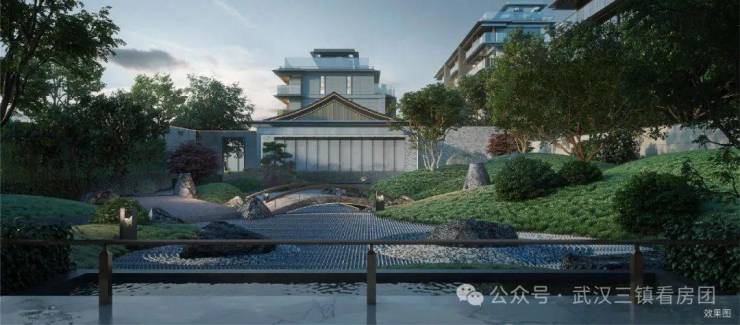 🎖三面绿化环绕,宋式园林设计,打造先游园再归家的礼仪动线