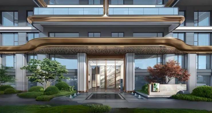 一座超大尺度的归家大门,长约66米,高近7米,整个地势抬高两米,搭配叠瀑水景,整个建筑仿佛立于水景之上,归家仪式感满满。面向街道、面向城市打开,主动升级城市空间,延展城市界面,将社区与城市互相渗透。