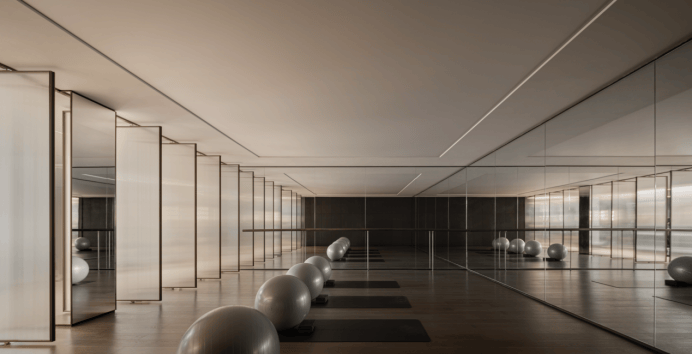 而珺华赋的下沉式会所,在刚出来的时候,是园区独一份。内设健身房、瑜伽室、私宴厅、阅读空间、会客区等……无论业主有商务需求,还是有日常休闲所需,在这里都能轻松实现。