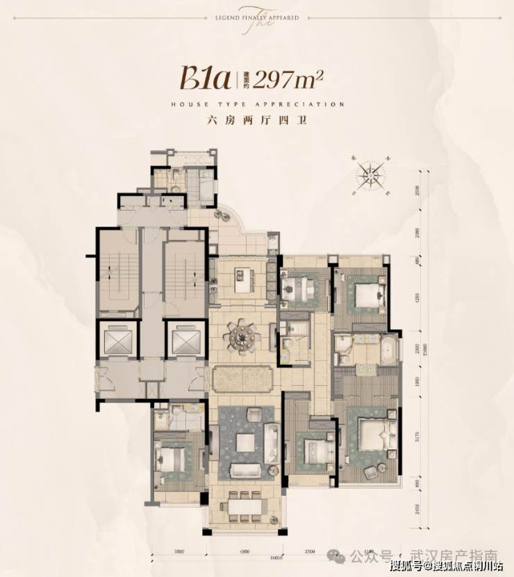 全是大平层豪宅!主力是265㎡(五房五卫)、275㎡(六房四卫)、297㎡(六房四卫)这几个经典户型。