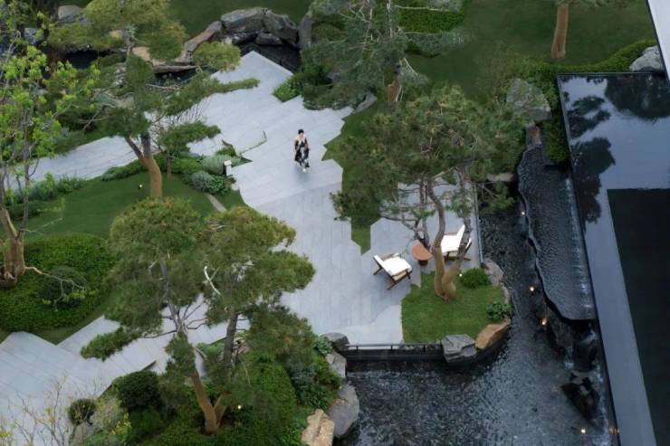 天青府重塑石迎、山门、寻涧、雅庭、寻幽、觅境六幕归家礼序,蜿蜒曲折、移步异景。