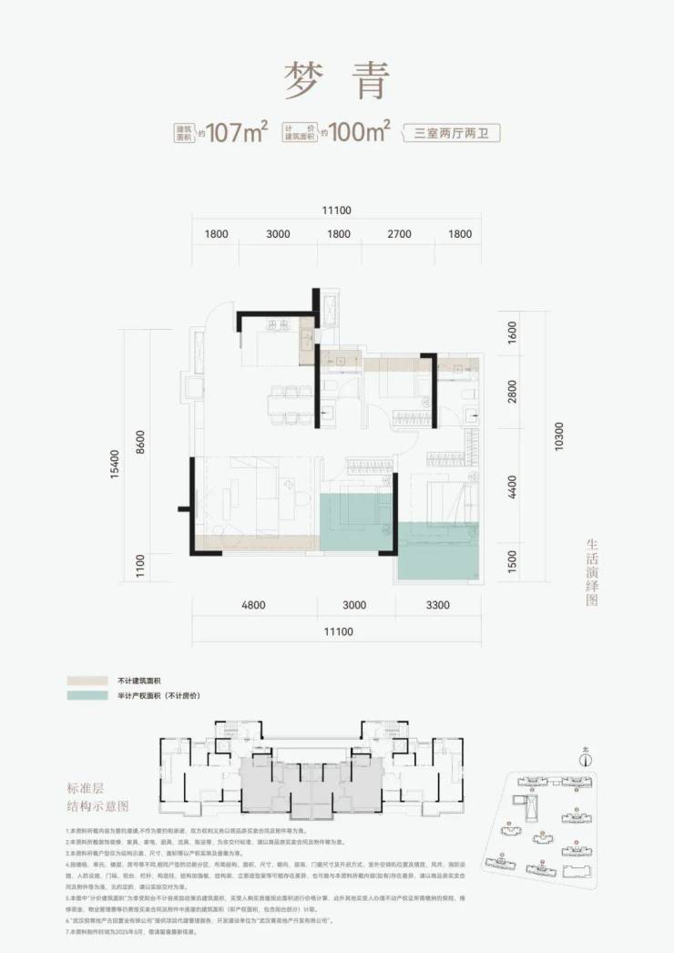 南向面宽达约11.1米,4.8米的大横厅、超过3米开间的卧室,光谷尖子生。