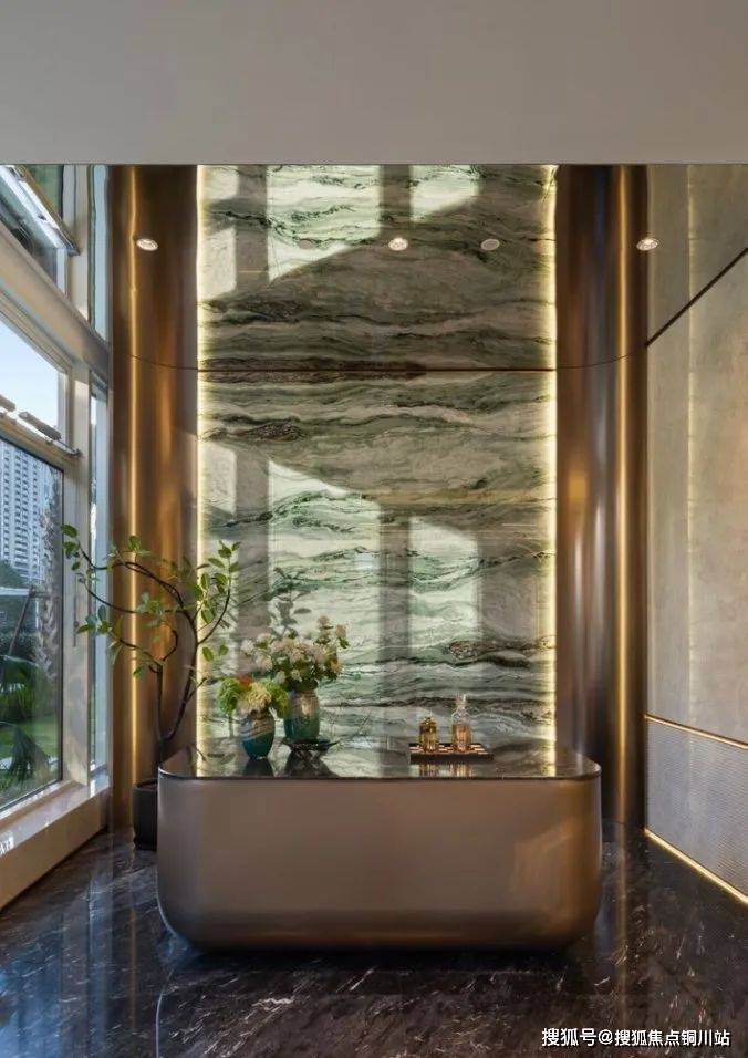 礼仪前台也是手工捶打的铜纹和华丽的挪威绿奢石。