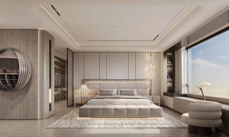 尊重家人私密生活与生活习惯,多套房设计,奢阔尺寸,居住舒适度非常高。尊享级主卧套房南向开间达到奢阔的约7.5米,进深约6.8米,整个套卧空间约48㎡,奢阔与尊崇兼具,布置舒适休息区、大面积衣帽区、南向全明主卫等奢华尊贵享受。