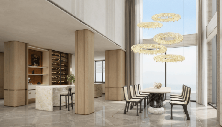 因为用了大量的大幅玻璃,所以它们拥有极高的窗墙比。建筑做得特别薄,约231㎡户型的南向面宽达到了约17.2米,约281㎡户型的南向面宽更是高达19米。这种「大面宽」的设计,带来了特别好的采光。